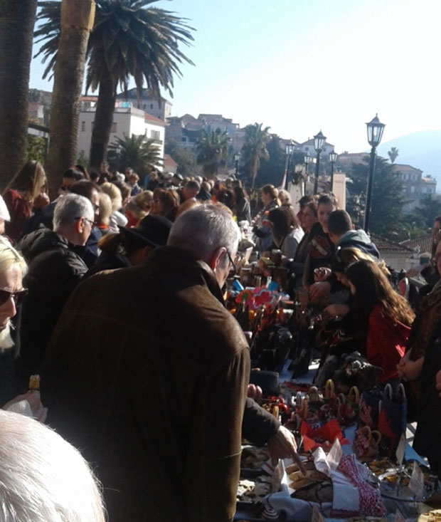 GUŽVA kao da je leto, u nedelju u centru Herceg Novog. Ulicom je prolazio abrum, kao najava 49. Praznika mimoze, a na terasi Gradske kafane okupilo se 26 izlagača, ili ukupno 50 učesnika Male fešte od naranče uz brojne posetioce.