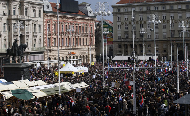 Nakon Trga žrtava fašizma učesnici protesta su krenuli prema Trgu sv. Marka, a saobraćaj na Trgu bana Jelačića je zatvoren.