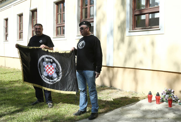 Kako prenose hrvatski mediji dvojica muškaraca razvli su u mestu Jasenovac (gde je bila i postavljena ploča poginulima sa ustaškim pozdravom) zastavu HOS-a na kojoj stoji ustaški poklič “Za dom spremni”.