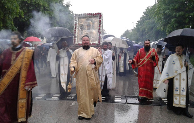Pantovićev poklon, ikona Bogorodice Trojeručice, posle svečanog dočeka i bdenja, nakon svečane đurđevdanske liturgije, poneta je na čelu litije koja je, uprkos kiši koja je lila, krenula kroz grad, da bi se posle nekoliko sati ponovo vratila u “manastir mučenik”, tako nazvan zbog pet razaranja, posle kojih je uvek propojao, ali, zbog čega na njegovim zidovima nije ostala nijedna oslikana ikona.