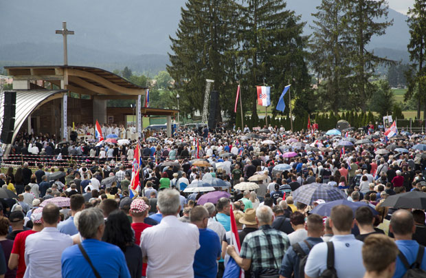 "''Najveći u Evropi'' kako to stoji u Dokumentarnom arhivu austrijskog otpora (DOW). Ono što je za jedne bezazlena komemoracija nevinim žrtvama, za druge je klanjanje ustaškom režimu. Fašisti su se u vreme nacista u Hrvatskoj pobrinuli za uništavanje Jevreja, Roma, Srba i antifašista, pe svega u koncentracionom logoru Jasenovac. Tamo je sistematski ubijeno najmanje 86.000 ljudi", piše u tekstu.