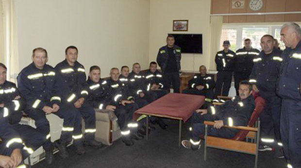 PREDSEDNIK opštine Pljevlja Mirko Đačić je u pratnji izvršnog direktora Rudnika uglja Slavoljuba Popadića, načelnika CB- Pljevlja Slavka Vojinovića, direktora DOO Čistoća Saše Ječmenice i člana Borda direktora pljevaljskog Rudnika Zorana Gospića posetio Službu zaštite i razgovarao sa vatrogascima koji su učestvovali u gašenju požara koji je pre dva dana zahvatio zgradu DPO u kojem su izgorele prostorije i oprema Lokalnog javnog emitera „Radio Televizije Pljevlja“ .