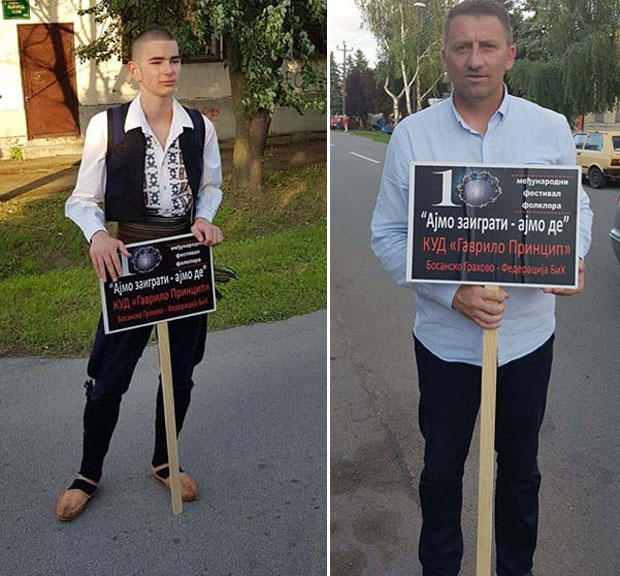 Prvi nastup KUD "Gavrilo Princip" iz Bosanskog Grahova imao u Kikindi. Zaigrao i Bogdan Vještica (18), koji je ovde rođen u izbeglištvu. Počeli su da vežbaju bez instrumenata, odeće, opanaka