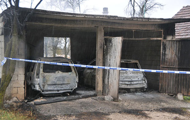 DVA automobila, vlasništvo porodice Božović u nikšićkom naselju Miločani, zapaljena su juče oko četiri sata posle ponoći. Radi se o "ford fjužnu", koji je pripadao Mlađenu Božoviću, i "reno meganu", njegove kćerke Jasmine, koji su bili parkirani u garaži, koja je takođe oštećena.