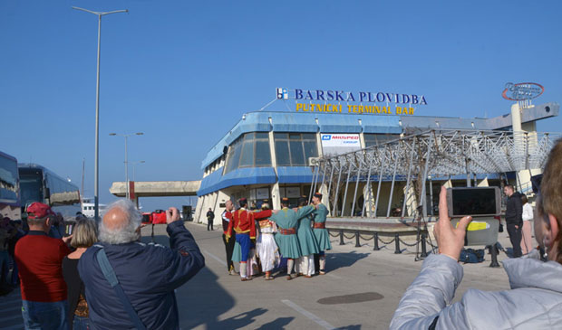 Turistička organizacija Bar, kompanija Barska plovidba i Klaster turizma i kreativne industrije za ovu priliku pripremili su tradicionalni doček za goste sa kruzera uz podršku opštine Bar.