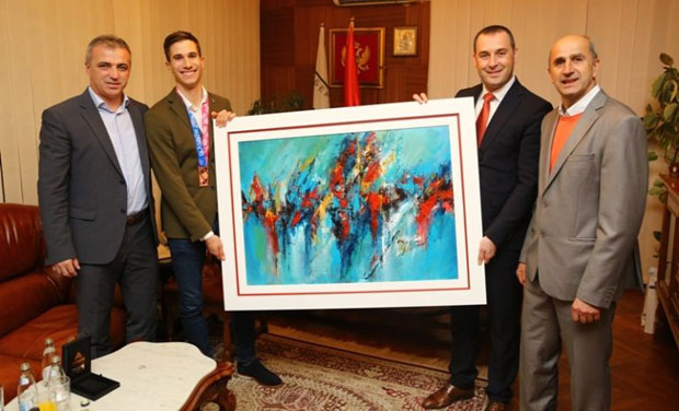 U znak pažnje Opštine Berane, predsednik Šćekić je Strahinji uručio na dar vrednu umetničku sliku, autorke Sanje Boričić.
