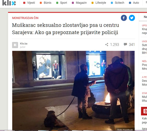 Potraga za muškarcem je usledila nakon što je Udruženje za zaštitu životinja Drims na svom Fejzbuk profilu upozorilo na muškarca koji je u centru Sarajeva seksualno zlostavljao psa.