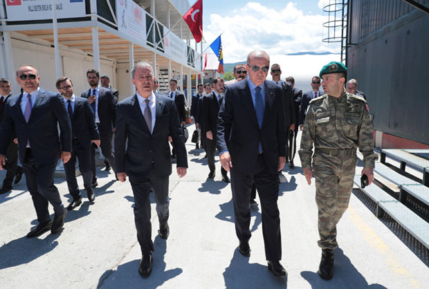 U pratnji Erdogana bili su šef turske diplomacije Mevlut Cavusoglu, ministar odbrane Turske Hulusi Akar, ministar trezora i finansija Berat Albajrak te ministar transporta i infrastrukture Cahit Turhan i drugi članovi visoke turske delegacije.