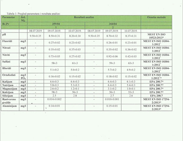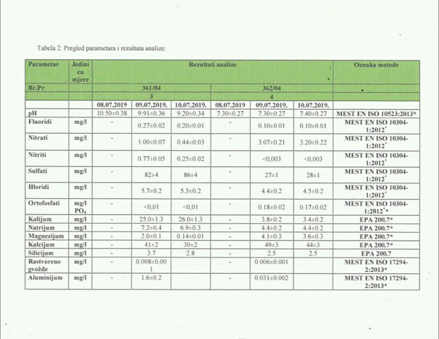 Rezultati analize pokazali su promene ph tokom vremena što navodi na zaključak da su vrednosti ph vode u vreme dešavanja akcidenta bile iznad izmerenih 8. jula 2019.godine.