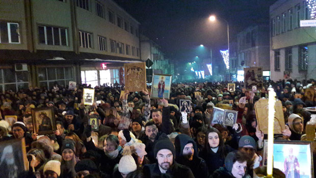 I večeras se u 18 časova u crkvi i ispred crkve Svete Petke u Pljevljima okupio narod još u većem broju u odnosu na predhodne večeri na Moleban, nakon koga će ulicama Pljevalja ponovo krenutui litija iskazujući svoje nezadovoljsto izglasanim zakonom o Slobodi veroispovesti.