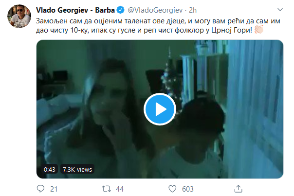 Uz snimak, Georgiev je napisao: "Zamoljen sam da ocenim talenat ove dece, i mogu vam reći da sam im dao čistu 10-ku, ipak su gusle i rep čist folklor u Crnoj Gori!".