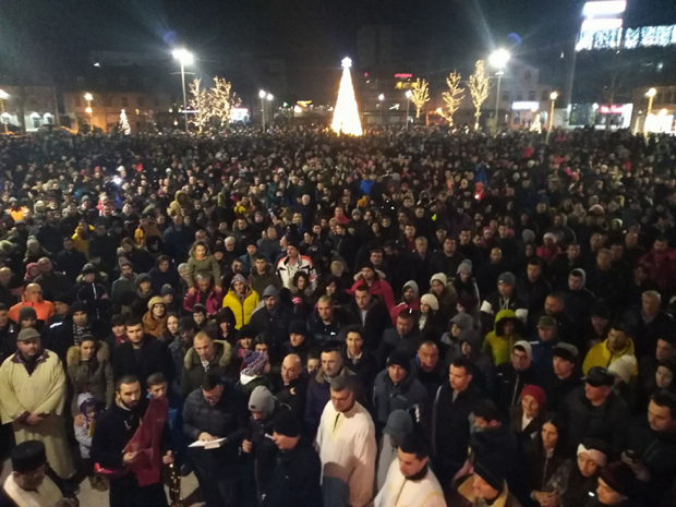 Preko 25.000 Nikšićana na litiji nakon molebana u Sabornom crkvi Svetog Vasilija Ostroškog, Sabrali se na gradskom Trgu slobode.