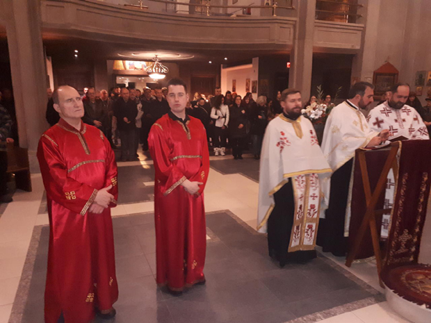 -Otac Vuk Milišić je pročitao saopštenje Episkopskog saveta SPC u Crnoj Gori, a otac Mališa Milovanović je održao i poučno slovo. Posle krsnog vhoda po hladnom vremenu a po povratku u naš dom,sav narod je otpevao himnu sv. Savi, a mlađani guslar Kristijan Oljača, guslao i i pevao junačke pesme iz naše prošlosti. Posle guslarskih pesama predsednik UO Crkve svetog Arhangela Mihajla g. Petar Atanacković je pozdravio prisutne i izvestio o aktuelnim događajima, jer je i sam poreklom iz Budve, a po pozdravnom slovu, naš narod ostao pod krovom našeg srpskog doma, družio se i slušao još guslarskih pesama u izvođenju starijih guslara iz naše zajednice, piše sveštenstvu i narodu u Crnoj Gori protojerej Mališa Milovanović iz dalekog Vankuvera, koji je u molitvama sa svimaa koji brane svetinje i sabraju se ovih hladnh januarskih danaa naa trgovima i u crkvama i manastirima širom Crne Gore, braneći veru svojh predaka...