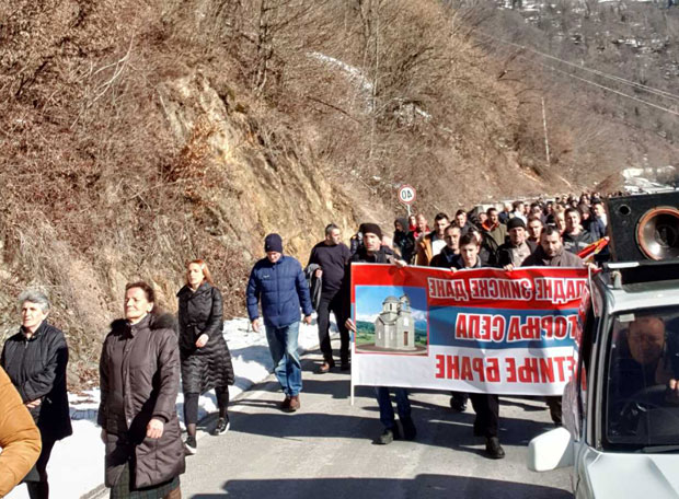 Građani Gornjih sela- Lobnica, Praćevca, Bastaha, Kurikuća, Vuče, krenuli su na 20 kilometara dugu litiju. Pod sloganom "Ne damo svetinje", u litiji su sa ikonama u rukama bila i deca od pet do sedam godina, koja su sa članovima porodica pešačili do Berana.