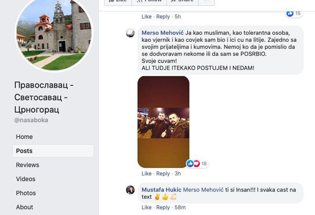 Merso Mehović (desno) brani svetinje; foto: Fejsbuk