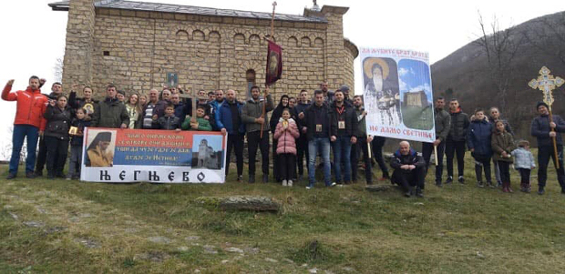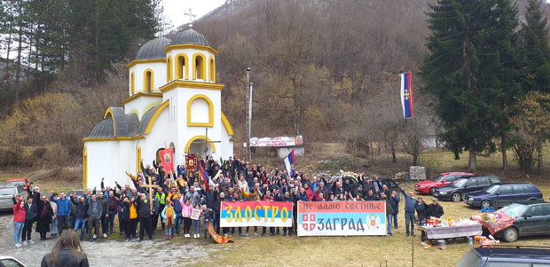U Tomaševu se grupa građana pred crkvom Svetog proroka Ilije pridružila svojim komšijama iz Vraneša. Uprkos hladnom vremeni, ovi hrablji ljudi idu u odbranu svetinja.