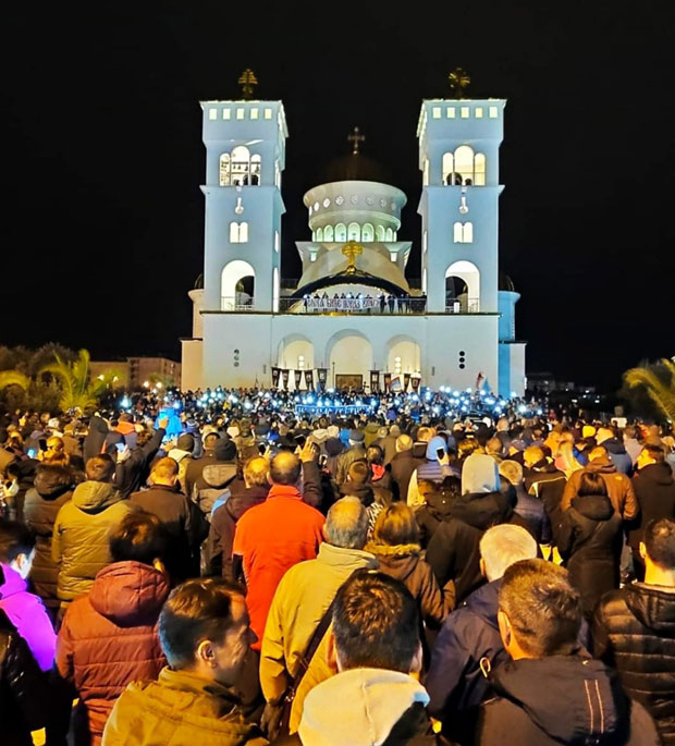 Komentar je bio “ceo svet se plaši korone, a ONI kolone.” Uprkos prohladnom vremenu i sitnoj kiši kolona u krsnom hodu kroz Herceg Novi bila je duga i snažna kao i svih prethodnih večeri. U crkvi na Toploj besedio je otac Živan Vukojević i podsetio da je ovo noć praaštanja i pomirenja a litije i nisu ništa drugo nego onaj hod kojim je Hristos hodio krsnim hodom na putu ka Golgoti.On je nosio isti krst na Golgoti kao što mi nosimo ikone iz naših hramova, naših kuća i porodica, poručio je Vukojević i dodao da litijama potvrđujemo vernost Bogu, ne branimo sebe već višnjega u našim srcima.