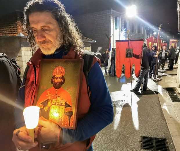 U Nikšiću preko 20.000 ljudi po jakoj kiši u mirnoj i dostojanstvenoj litiji koja je usledila nakon molebana u hramu Svetog Vasilija Ostroškog.Predvodi je protojerej stavrofor Gojko Perović, rektor Cerinjske bogoslovije.