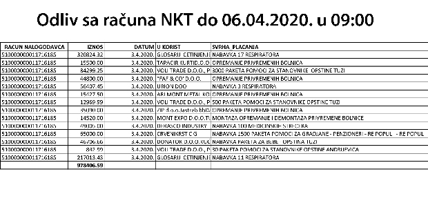 Ističu da uplate u izveštajnom periodu iznose 6.738.838 evra i 56.000 američkih dolata, dok je odliv sa računa - 978.406 evra.