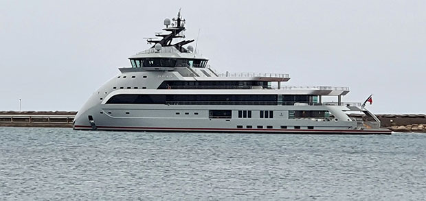 Spektakularni brod plovi pod zastavom kajmanskih ostrva, dug je 88,5 i širok 16 metara, a u luku Bar stigao je iz Valete.