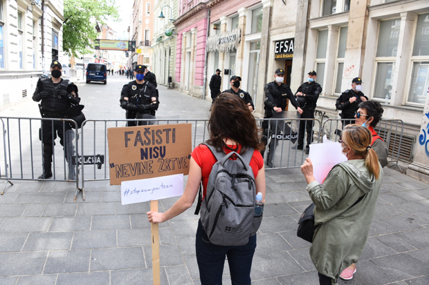 Manji broj građana je došao pred policijske blokade i povicima “Ustaše su fašisti” i parolama “Fašisti nisu nevine žrtve” izrazili nezadovoljstvo održavanjem mise.