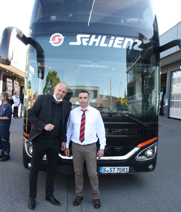 Danilo Đokić nam je omogućio i kraći razgovor sa direktorom firme Šlinc koja u svom posedu ima oko 190 što linijskih autobusa, što supermodernih turističkih vozila ali i drugih vozila za turističke usluge. Gospodin Erhard Kisel (Kiesel) kaže da je odmah podržao želju svog dugogodišnjeg saradnika i šefa pogona Danila Đokića i nastojanje Generalnog konzulata da se organizuje što jeftiniji i dobar prevoz Srba svojim domovima. Podršku prvog čoveka firme pomoglo je veliko zadovoljstvo radom njegovih šofera autobusa poreklom iz Srbije. Upoznao je Srbe kao odlične radnike i poštene ljude- reče nam g. Kisel.