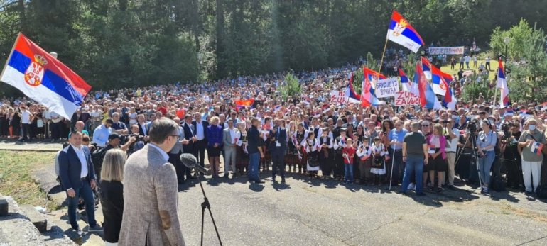 - Srbija ide napred, ekonomski se neuporedivo brže razvija, ali isto tako Srbija ume da čuva svoje nacionalno dostojanstvo, da se ne ponižavamo onako kao što smo se nekada ponižavali. Danas se hvalimo onim što izvozimo u zemlje EU, u tom smislu se Srbija mnogo promenila. Srbija danas ume da brine o svom narodu, Srbija danas ume da poštuje sebe i svoje žrtve i svoje ljude, ali ume i da poštuje budućnost svoje dece. Mi ćemo uvek gledati i pokazivati narodu kako i na koji način možemo da upravljamo Srbijom, pošteno, odgovorno, ozbiljno, da se pojavimo pred vama i da vam polažemo raune, ali istovremeno i da sebe kritikujemo - rekao je predsednik.
