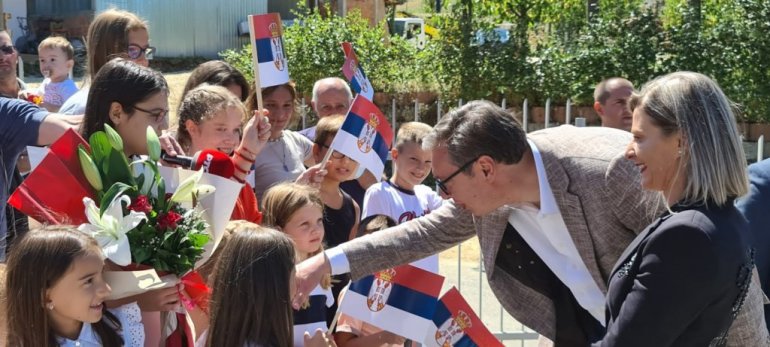 Vučiću su u znak dobrodošlice mališani zasvirali frule.