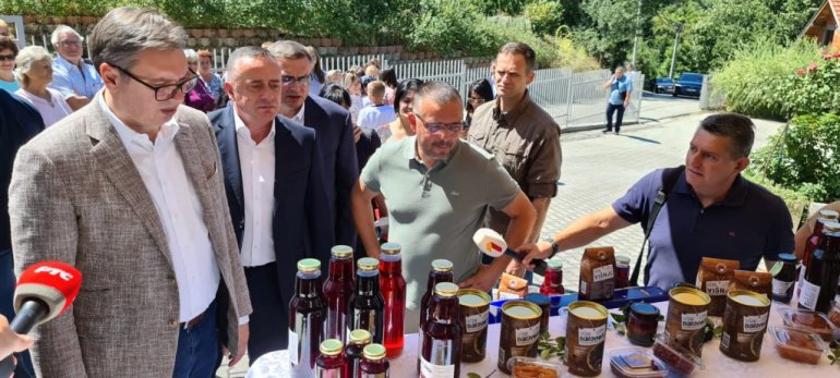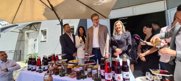- Posebno mi se svidela šljiva, kajsija i jagoda - prokomentarisao je Vučić, kome se dopao i sok od borovnice, pa je predsednik odlučio da za sina Vukana kupi paket ovog soka.