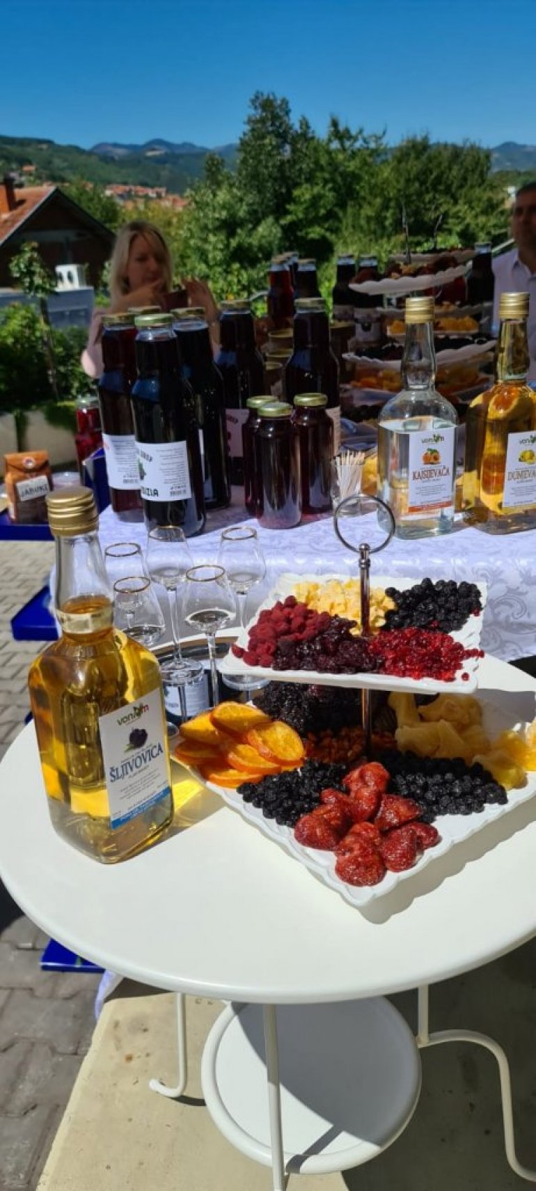 Paletu proizvoda sa sopstvenih zasada čine rakije od šljive - požegače i ranke, grožđa, dunje, kruške viljamovke, kajsije, maline...