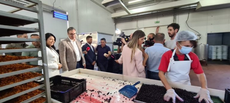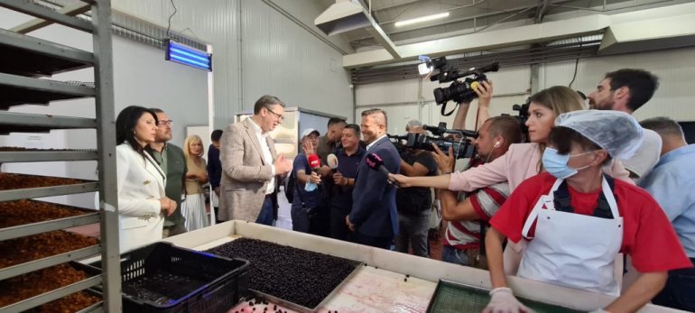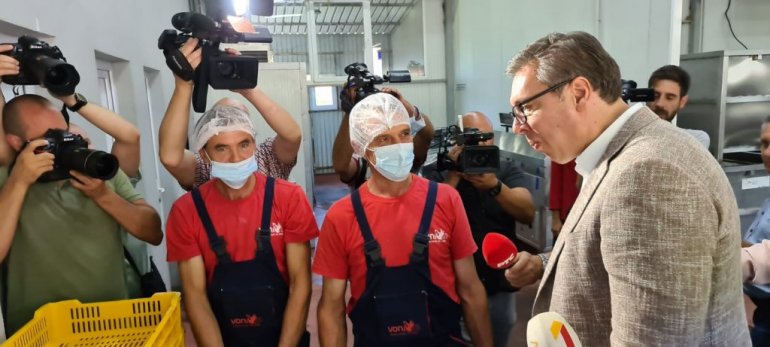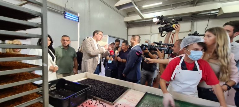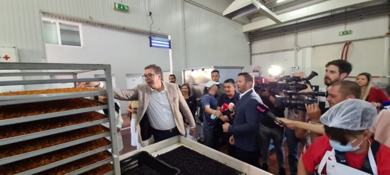 Vučić je obišao kompaniju za preradu voća i povrća Voni-M. Predsednik je probao voće koje se prerađuje ovde.