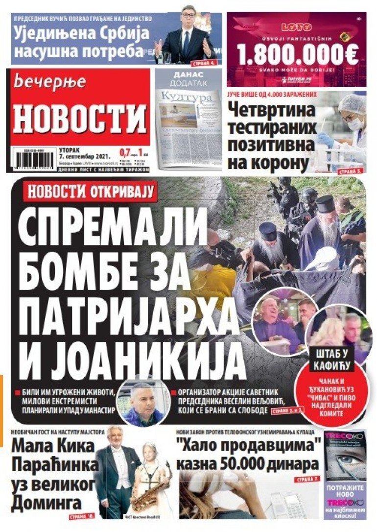 "NOVOSTI" OTKRIVAJU: Spremali bombe za patrijarha i Joanikija