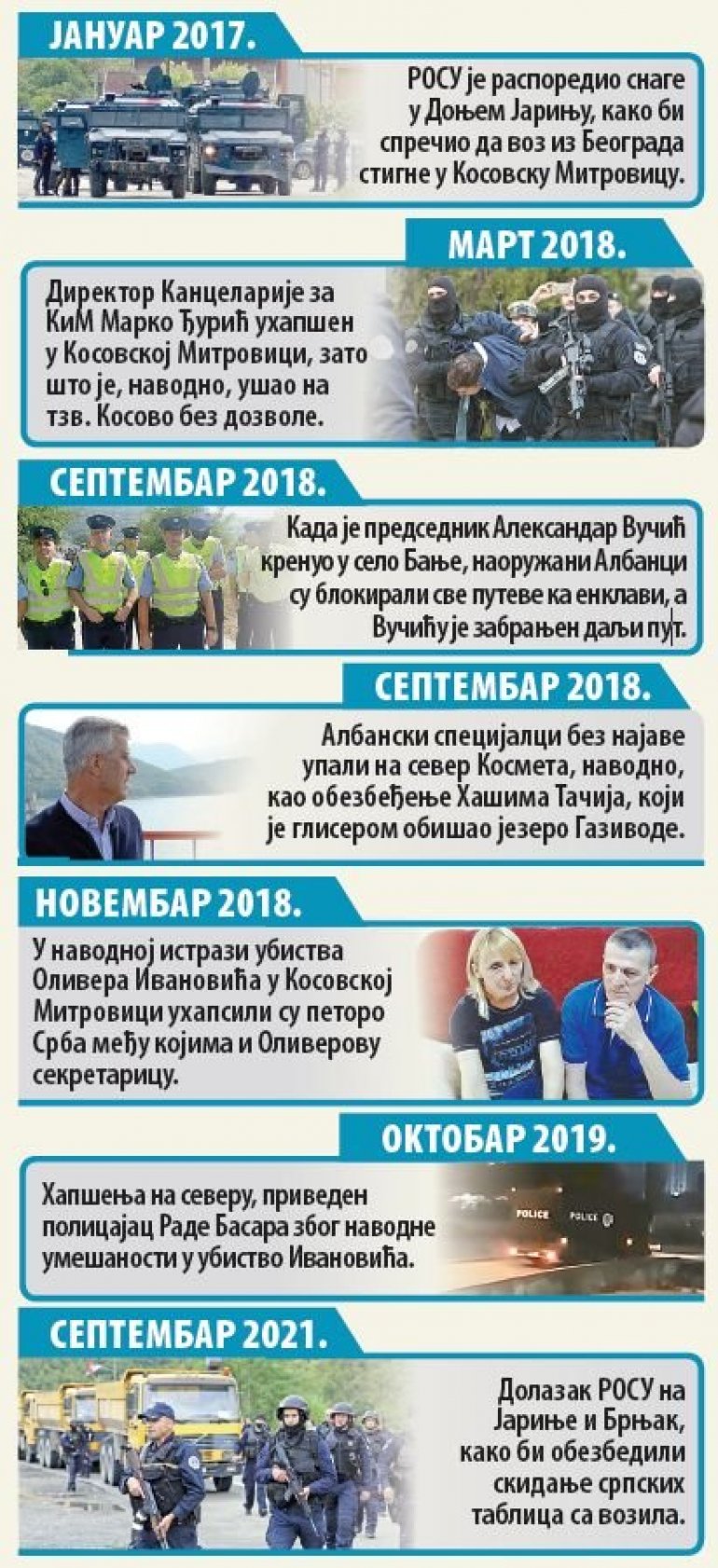 - Specijalci su bili raspoređeni po okolnim dvorištima, na ulici. Počeli su na okupljeni narod da bacaju suzavac, šok bombe... Mi smo onako goloruki želeli da se suprotstavimo njihovoj sili. Jedino što smo mogli bilo je da zapalimo neku gumu i bacio pokoju kamenicu, ali su usledili njihovi bojevi meci po nama... - dodaju meštani koji su potom blokirali put koji vodi u pravcu Prištine odnosno prema Leposaviću, što su učinili i na raskrnsici kod Tehničke škole u Severnoj Mitrovici.