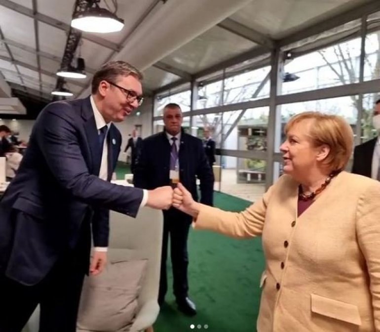 Predsednik Srbije se susreo i sa odlazećom nemačkom kancelarkom Angelom Merkel, a na Instagram stranici "Budućnost Srbije AV" objavljena je fotografija susreta na marginama Samita o klimatskim promenama: