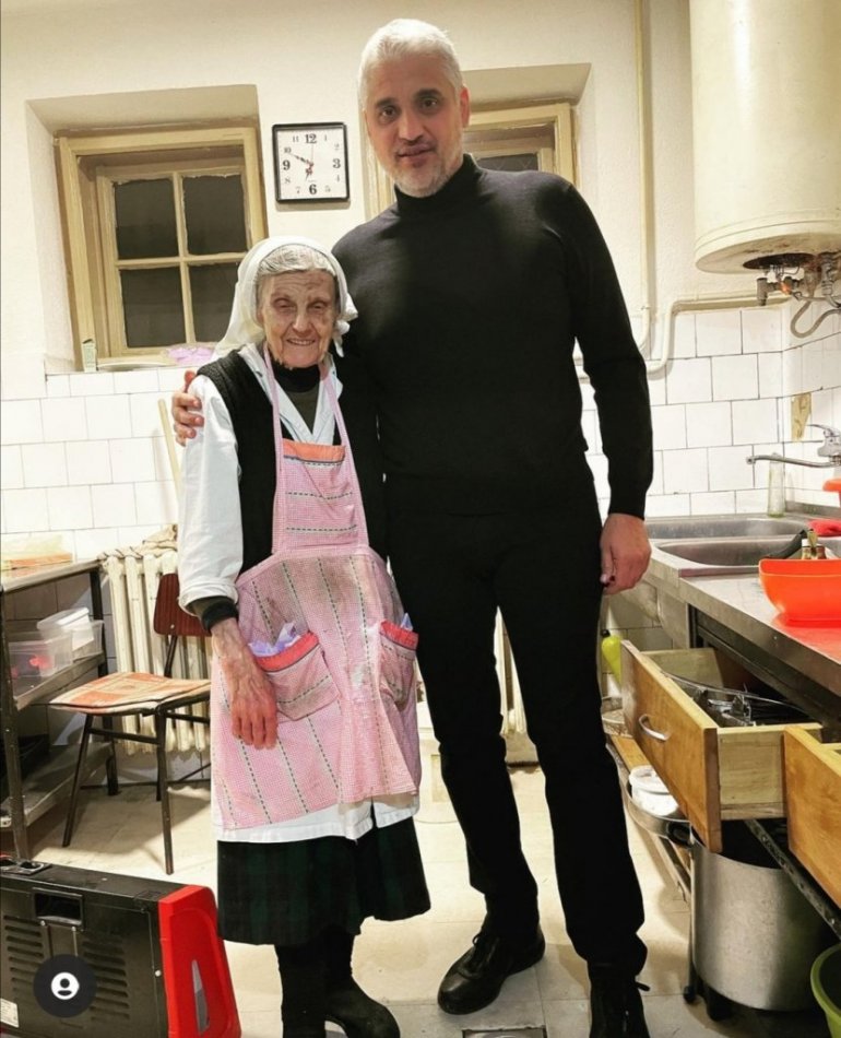 Gost se fotografisao sa kuvaricom Budom (89), čiju su čuvenu teletinu i jagnjetinu probali Tito, Kardelj, Đinđić...