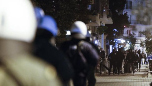 Došlo je do kraćeg sukoba na mitingu u centru Atine, kada je policija zaustavila demonstrante koji su blokirali saobraćaj u blizini premijerove zvanične rezidencije.