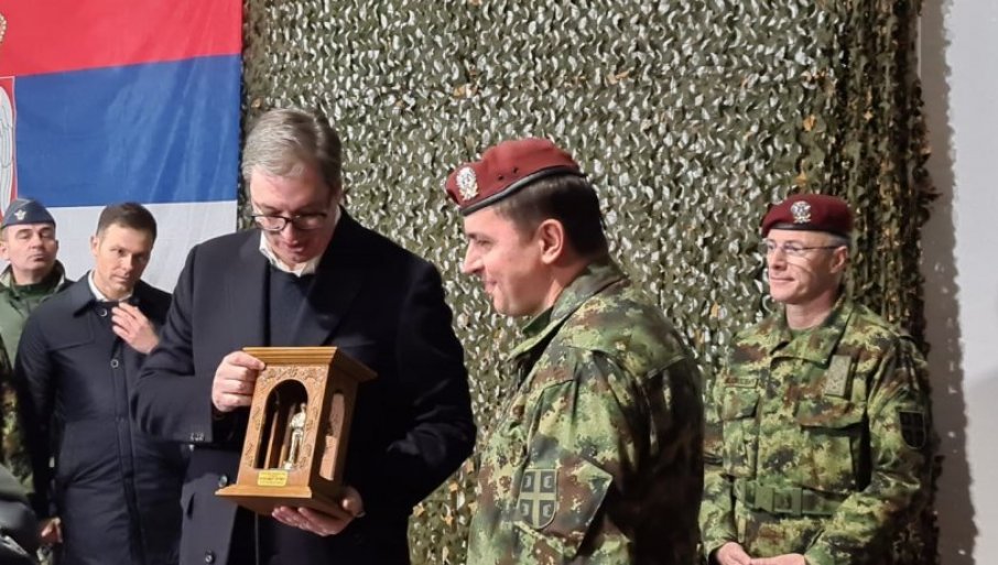 POSEBAN POKLON ZA VUČIĆA: Predsednik dobio statuu vojnog padobranca(FOTO)
