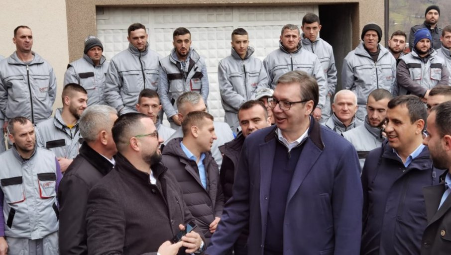 Predsednik Srbije je posetio fabriku "Ekstra San" ispred koje se okupio veliki broj radnika i meštana.
