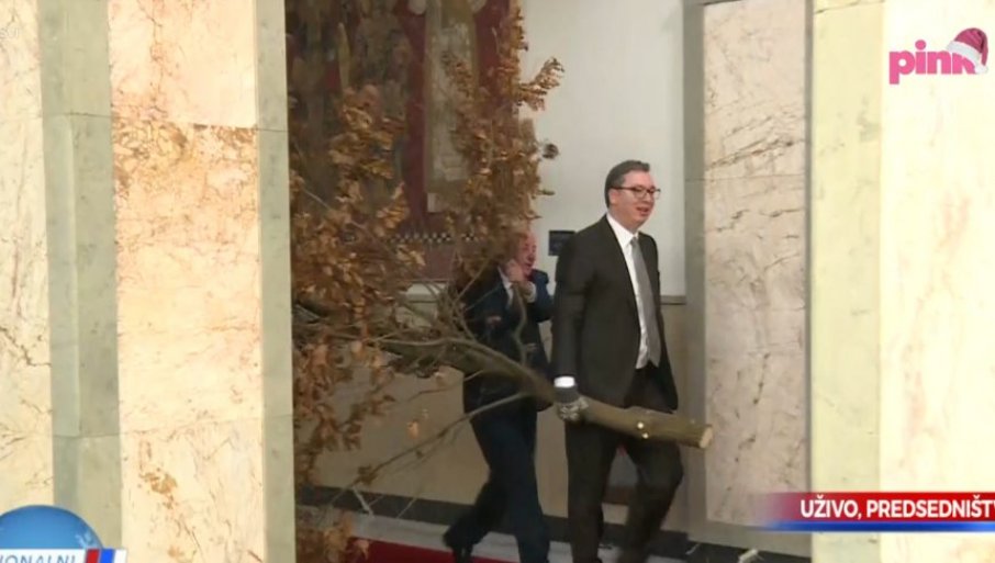 BADNJI DAN U PREDSEDNIŠTVU: Vučić uneo badnjak, deci iz Hrvatske poručio da u Srbiji imaju dom (VIDEO)