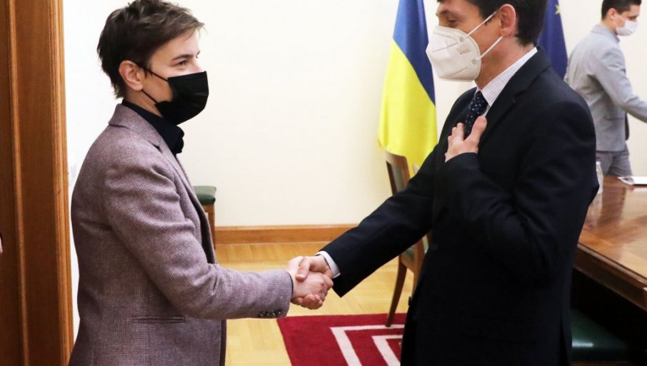 PREMIJERKA Ana Brnabić primila je danas u oproštajnu posetu ambasadora Ukrajine u Srbiji Oleksandra Aleksandroviča i zahvalila mu na predanom radu i ličnom doprinosu učvršćivanju veza dve države tokom mandata.