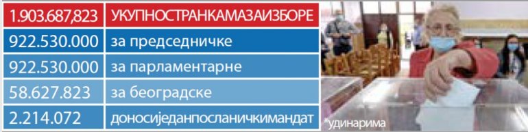 JEDAN ODSTO GLASOVA I OSTAJE IM "KAPARA": Stranke za izbore na tri nivoa 3. aprila dobijaju 1,9 milijardi dinara