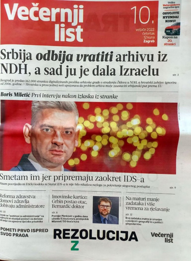 Nema sumnje da na 162.000 stranica građe koje je prikupio naš Vojni arhiv, a koje su dostavljene izraelskom ambasadoru, ima mnogo razloga da Zagreb bude u panici. Pogotovo imajući u vidu sve jače sramne pokušaje da se relativizuju zločini počinjeni u NDH, da se izvrši revizija istorije i umanje strahote ustaškog režima.