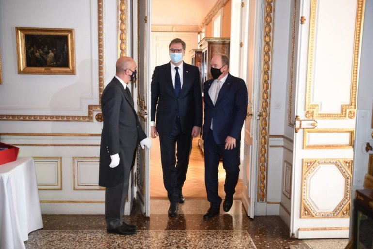 Podsetimo, predsednik Srbije Aleksandar Vučić započeo je danas svoju zvaničnu posetu Monaku, a knez Albert II od Monaka priredio mu je svečani doček ispred Kneževske palate.