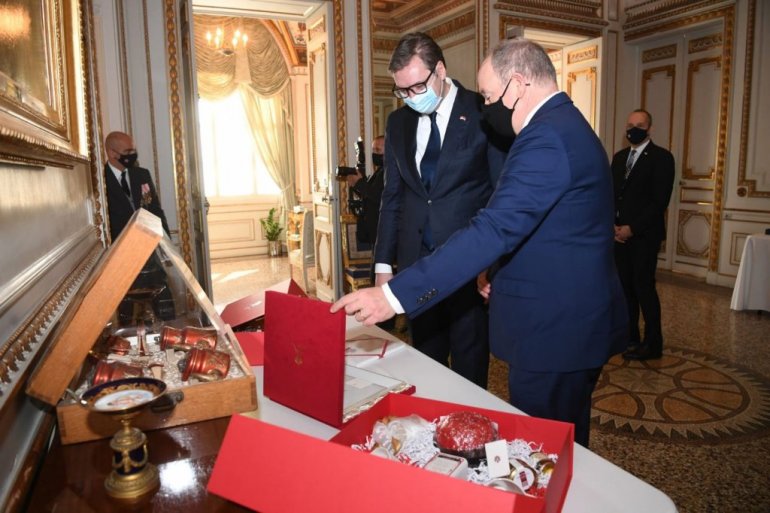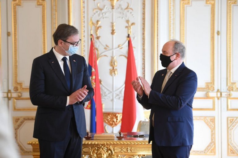 KNEZ Albert II od Monaka uručio je predsedniku Republike Srbije Aleksandru Vučiću orden Velikog krsta reda Svetog Šarla.