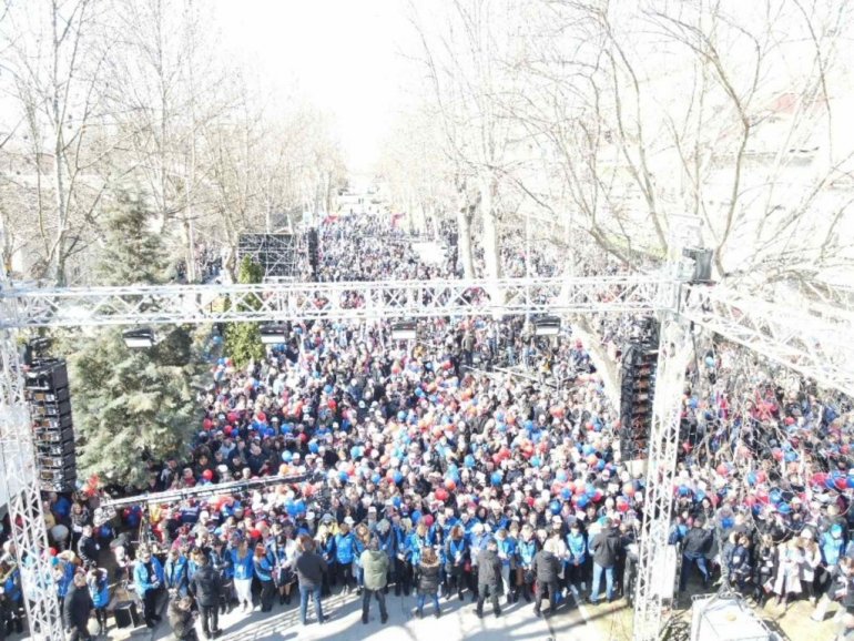 – Nisam uništio Srbiju za vreme svog mandata, i mogu da pogledam u oči svojim političkim protivnicima. Kada govore o sudaru dobra i zla, loših ljudi i loših rešenja, da li mislite da sam srećan uvek zbog svega što uradim? Pa nekad i nisam, ali se borim da to ispravim. Nastavićemo da menjamo na mnogo mesta, da radimo i u Vladi Srbije. Kažu da je dobro bilo kad je prosečna plata bila 300 evra, ja mislim da nije, zato moramo da se borimo za bolje, Srbija ne sme da ide u prošlost i zato vas pozivamo da 3. aprila pobedimo na normalan i ozbiljan nnačin i one iz prošlosti i one koji bi Srbiju da vrate u prošlost.