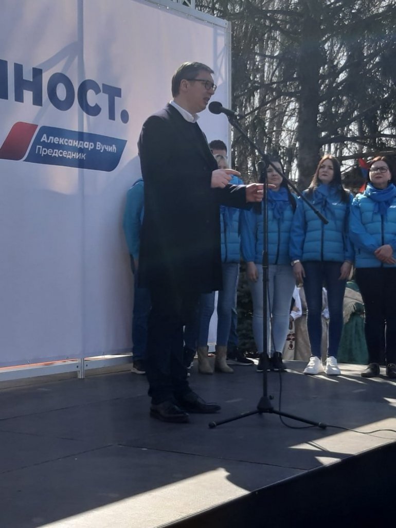- Neki od naših protivnika su rekli danas "nikada ne reci nikada za NATO". Ja ne mislim da treba da uđemo u NATO. Imamo svoju vojsku da nas čuva. A što se tiče NATO - mi da oprostimo možemo, ali da zaboravimo nećemo. Ni Milicu Rakić, ni svu našu decu. Sva njihova politika se svodi na "UA Vučić". Ja neću da odgovaram na to. Moje je samo da vas pozovem da sami procenite koliko smo se borili. Ja sam u prethodnih pet godina dao sve od sebe. Da li sam grešio. Nema sumnje da negde jesam. Ali sam uvek rekao izvini, i nastavljao još jače da se borim - kaže on.