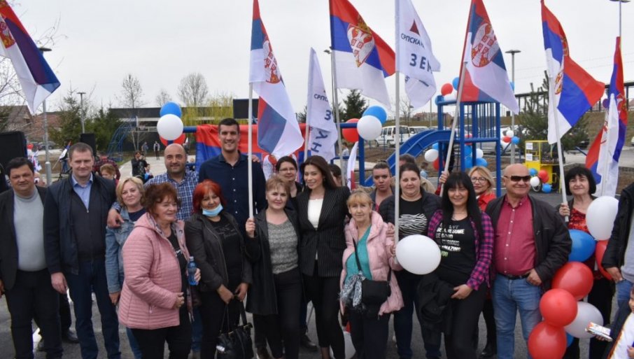 IRENA Vujović i Marko Kešelj obišli su danas novootvoreno igralište u naselju Plavi horizonti u Zemunu.