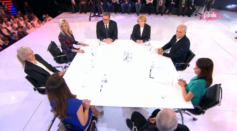 PREDSEDNIČKI kandidat Aleksandar Vučić sa svojim saradnicima bio je gost na TV Pink.