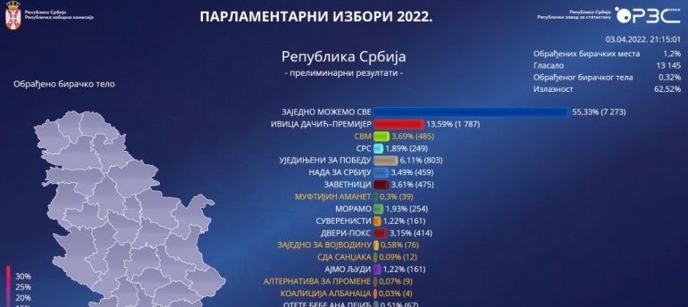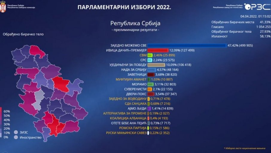 VUČIĆEVA LISTA UBEDLjIVO VODI: Prvi rezultati parlamentarnih izbora
