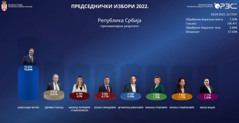 Rezultate je pročitao predsednik Aleksandar Vučić.